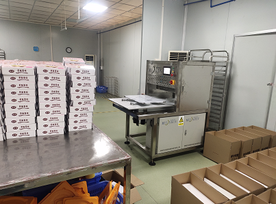 該設備適用于產量較大的食品流水線,可切正/長方形、片狀
