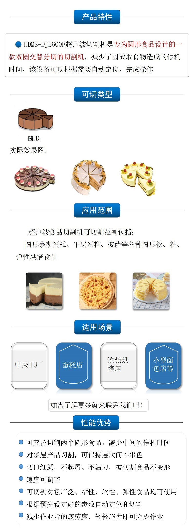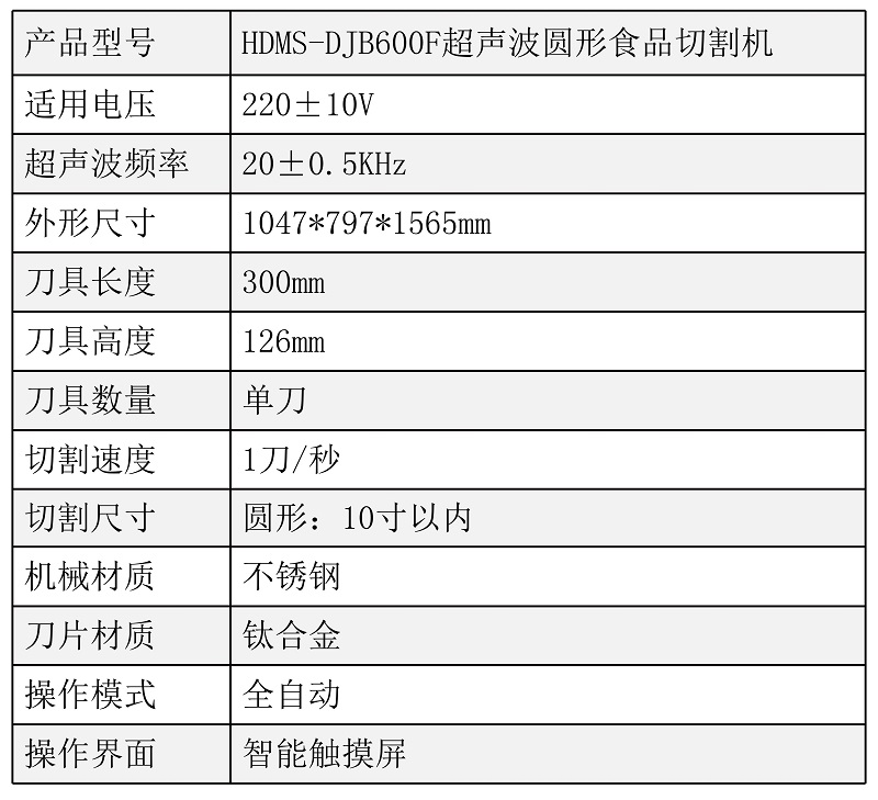 該設(shè)備配備單把超聲波刀片,可切圓形(只限一個(gè)圓蛋糕),也可切方形 |