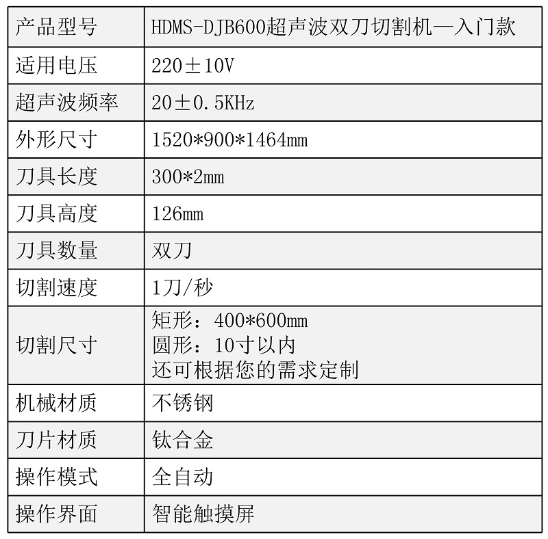 該設備配備雙把超聲波刀片,既可切方蛋糕,也可同時切兩個圓蛋糕,還具有自動上水洗刀、安全光柵的人性化功能,效率高,更方便